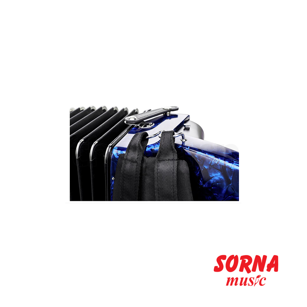 این آکاردئون با بندهای قابل تنظیم و پشتی برای راحتی و پشتیبانی نوازنده در حین نواختن عرضه میشود. همچنین، با یک هارد کیس همراه است که حمل و نقل و حفاظت از آن را آسان میکند.