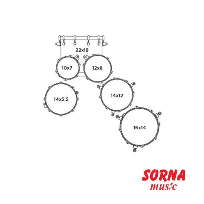This 6-piece shell pack includes 10″and 12″ stand mounted rack toms, 14″ and 16″ floor toms, 14″ snare drum and a 22″x18″ kick.