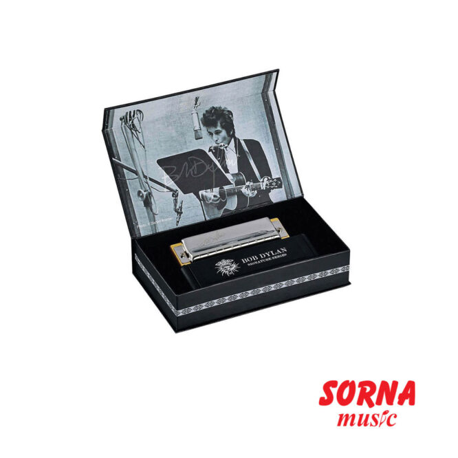 این هارمونیکای 10 سوراخه که دارای 20 Reed می باشد و به نام باب دیلن نام گذاری شده است، دارای صفحه روکش با امضای دیلن، کیف با لوگوی چشم دیلن، صفحه های Reed با روکش طلایی و یک جعبه با تصویر انحصاری باب دیلن در جلد داخلی می باشد.
