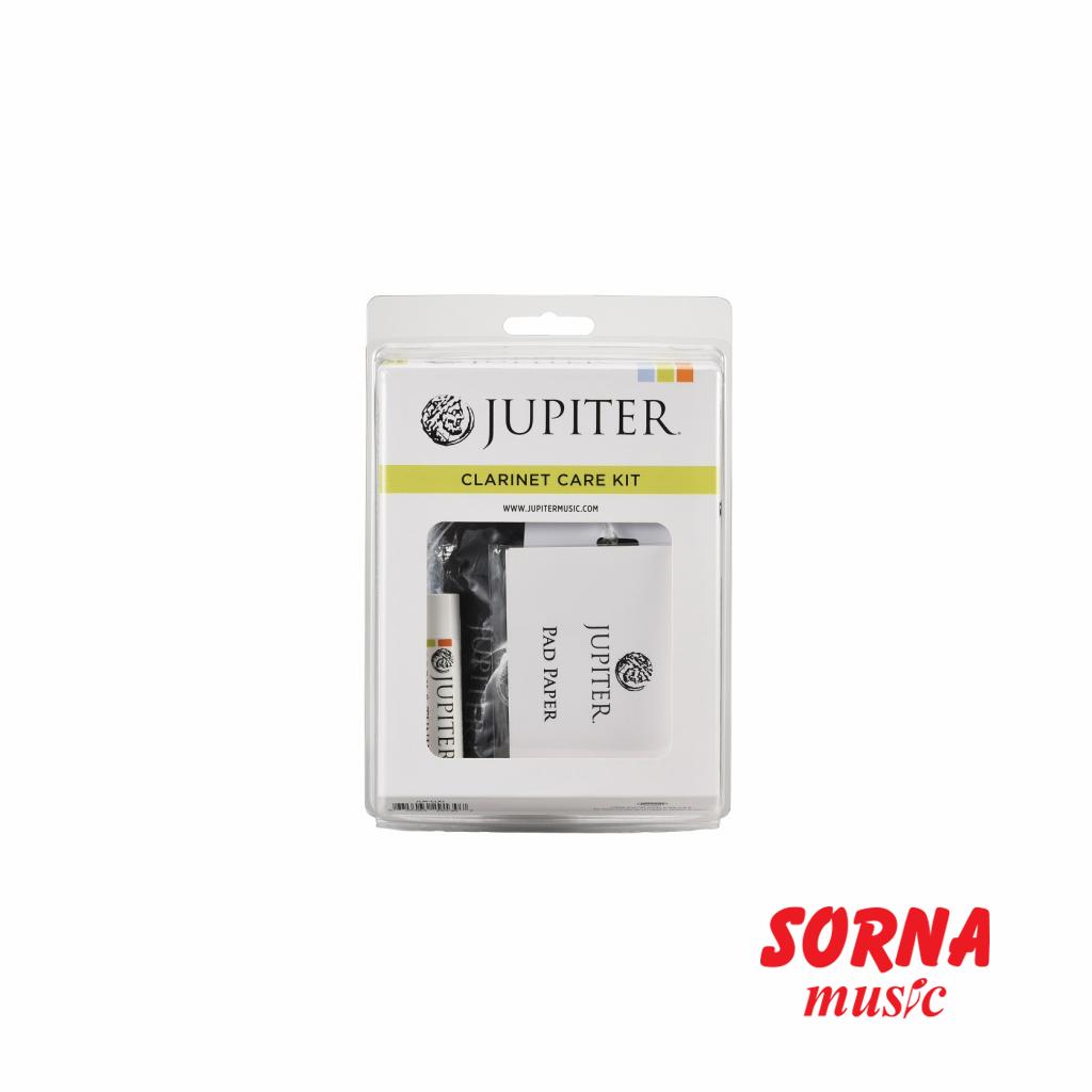 The Jupiter Clarinet Care Kit includes Polish Cloth, Body Swab, Mouthpiece Brush, Duster Brush, Cork Grease, Reed Holder, Pad Paper, Case ID Tag.